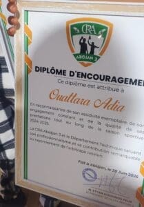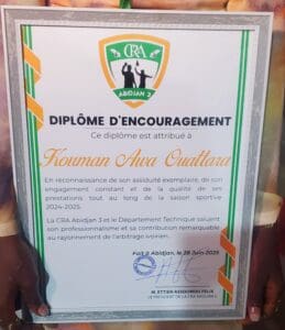 Pour Matinin Koné, cette distinction marque un tournant. Ancienne gardienne de la Juventus d’Attécoubé, elle s’est lancée dans l’arbitrage sur les conseils d’Awa Irène, présidente de l’AFABCI. Aujourd’hui, sa progression est saluée par ses pairs.