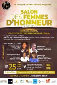 Abidjan,le 18 novembre 2023(Abidjanpress)-Après les deux premières haltes qui furent un succès, la Fondation Femmes d’Honneur avec à sa tête Samira DAKOURY remet le couvert ce samedi 25 novembre pour la 3e édition du Salon des Femmes d’Honneur. Un important rendez-vous qu’abritera l’Institut National de la Formation Sociale d’Abidjan-Cocody.