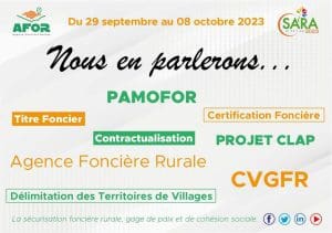 Les émissaires du Ministre BAMBA Cheick Daniel,le Directeur Général de l’AFOR invitent les populations à » venir causer » avec eux pour en savoir davantage sur la sécurisation. foncière rurale. » Les échanges porteront sur » l’AFOR ,le PAMOFOR, le titre foncier,la certification foncière, la Contractualisation, la délimitation des territoires Villageois et les CGVFR « ,lit-on .