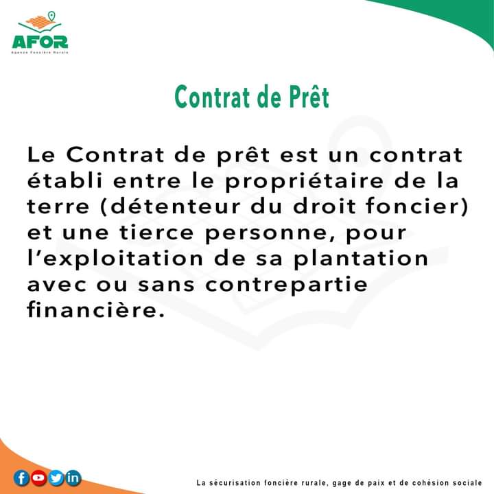 Partager Facebook Twitter WhatsApp Télégramme E-mail Copier Le Lien AFOR le contrat de prêt Sécurisation foncière rurale
