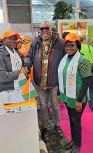 Très timide la veille à cause de la circonstance, la délégation ivoirienne, conduite par le Ministre d’Etat, Ministre de l’Agriculture, du Développement Rural et des Productions Vivrières, s’est particulièrement distinguée ce dimanche. Écharpes, casquettes et tee-shirts (pour certains) aux couleurs nationales, les officiels de la délégation dont M. COULIBALY Nahouo Amadou, Directeur de la Communication, de l’Information, de la Formation et de la Sensibilisation de l’AFOR, ont réservé un accueil chaleureux au Ministre d’Etat et au Ministre des Ressources Animales et Halieutiques. Animation, chants, danses à la gloire du pays et des Éléphants footballeurs, récents champions d’Afrique, échanges et coordination des activités de la semaine… ont meublé le temps. Le tout, dans une ambiance bon enfant.