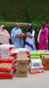 Il est bien de rappeler que plutôt dans la même journée l’ONG Djanatou Firdaws a bénéficié de don de produits alimentaires et hygiéniques des mains de la présidente de l’association des épouses des ambassadeurs des pays africains accrédités en côte d’ivoire, Mme Laghla Michèle Vergess au nom de leur association à la résidence de l’ambassadeur de la Mauritanie à Cocody .