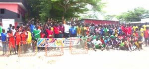 Une équipe de Tchoukball se compose de 07 joueurs et 5 remplaçants.Le jeu consiste à faire 3 passes avant de tirer sur le cadre et faire tomber la balle sur l’ère de jeu pour un but.300 élèves venus de 6 établissements scolaires ont vibré.Il s’agit du collège Moderne Yaou,collège Moderne Dabou, Collège Moderne Abraham,Collège Privé Ezechias 2,Groupe scolaire Véronique et le collège Pierre et Marie Curie.