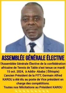 Abidjan, le 10 décembre 2024(Abidjanpress)-Le Professeur Germain Alfred Karou a rempilé le 15 octobre dernier à la faveur de l’assemblée générale élective à la Confédération africaine de tennis de table, pour une deuxième mandature en qualité de Vice-président chargé des compétitions. De retour à Abidjan au soir de sa brillante élection à Addis-Abeba (Éthiopie), l’ancien Président de la fédération ivoirienne de tennis de table, par ailleurs, membre de la Commission de nomination de la fédération internationale de tennis de table (ITTF) nous a accordé une interview exclusive. Il y évoque son élection, ses missions, les grands challenges du tennis de table africain et son regard sur cette discipline en Côte d’Ivoire.