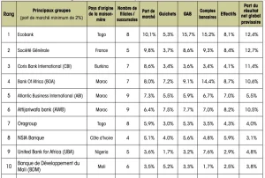 Le rapport note que les banques françaises sont désormais reléguées au second plan, du fait sans doute de leur retrait progressif du marché africain. Ainsi, sur les 80 filiales appartenant aux 13 premiers groupes dans les huit pays de l’UEMOA, seules deux sont françaises, appartenant à BNP Paribas. La Société Générale ne figure plus dans ce classement des plus grands groupes.