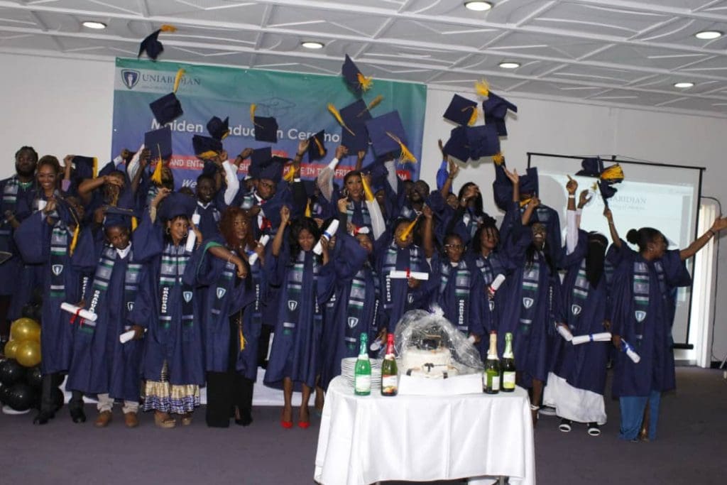En 2016 ,l’asphère des grandes écoles et des universités en Côte d’Ivoire s’enrichissait d’une nouvelle arrivée.L’University of Abidjan en abrégé UNIABIDJAN.Cinq ans son avènement sur les bords de la Lagune Ébrie ,cette université Bilingue marquait une halte ce samedi 16 octobre à l’Éden Golf Hôtel pour célébrer son anniversaire.Une journée mémorable ponctuée également par la première édition de la graduation » remise de diplômes » à 46 étudiants issus de plusieurs filières.